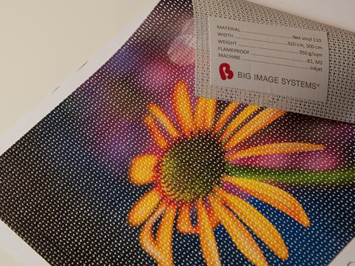 Net vinyl is also known as vinyl mesh and it is very suitable for outdoor applications like building graphics. The material is fairly rigid and holds up well to hard conditions.
